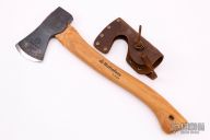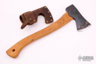 This Classic Hatchet by Hultafors features a forged carbon steel head with hammer pole. The handle is hickory. Comes with a leather blade cover. Excellent condition.