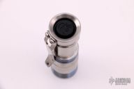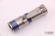 This Ion flashlight from Mitch Lum/Laulima Metal Craft and Joshua Dawson features a titanium body and pocket clip. 219C 4000K triple emitter. Carclo Narrow Spot optic. Flat sapphire watch "glass" window. Uses a single 18350 battery. Battery is not included.  This piece comes with a custom pouch and original COA, dated 15-Dec-2021.  New from maker.
