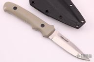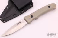 This Raven from Dan Crotts features a satin blade with a false top edge and a full tang construction. .130" blade stock and .734" blade depth. The handle features micarta scales and G10 pins.  Includes kydex sheath with belt loop set up for horizontal carry. New from maker.