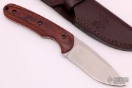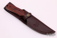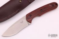 This Large Activator by Benchmade is a Snody design. It features a .140" thick tumble finish blade with 1.240" blade depth, full tang construction. Notched thumbrest. Wine Wood scales. Comes with brown leather sheath and original box and papers. Excellent condition.