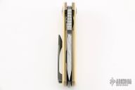 This Micro Tanto linerlock from Michael Burch features a hand rub satin finish blade with notched thumbramp and flipper tab. The handle is comprised of bead blast finish bronze anodized titanium liners, Zirconium backspacer, Westinghouse scales, Zirconium pivot collars. The pocket clip is also Zirconium and positioned for tip up carry. Blade is centered when closed and locks up with no movement. Comes in a padded/zippered case with COA dated 2019. Has a couple scuffs and scratches on the scales and clip, otherwise great condition.