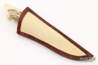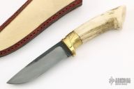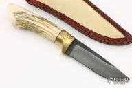 This Hunter by Last Knives features a nice hamon, .218" blade stock and 1.073" blade depth, hidden tang construction. The handle has a carved brass guard with a crown stag grip. Comes with a brown leather sheath with stingray skin inlay and COA. New from maker.