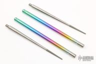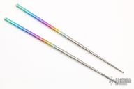 Feed yourself and your pride of ownership with these exquisitely crafted titanium chopsticks. Designed and engineered by world-renowned custom knifemaker Alan Folts and manufactured under the Foltsum™ brand, these chopsticks are beautifully crafted from solid 6AL 4V titanium stock. Their two-piece construction allows them to be conveniently carried when not in use, yet assembled in seconds thanks to a precision threaded joint. Machined in painstaking detail, they feature three different surface finishes, including a bead blasted area near the tip for a secure grip on food, a satin-finished center section, and a rich color-anodized handle section. Machined accents at the top and center add both a touch of style and a thoughtful grip texture that complements their perfect balance.Remarkably strong and lightweight, these elite eating utensils are also 100% corrosion resistant, completely food safe, hypoallergenic, and easily cleaned with ordinary soap and water. They come complete with a ballistic nylon carry pouch with dedicated pockets for all four pieces and a heavy-duty Velcro® closure.