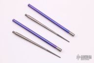Feed yourself and your pride of ownership with these exquisitely crafted titanium chopsticks. Designed and engineered by world-renowned custom knifemaker Alan Folts and manufactured under the Foltsum™ brand, these chopsticks are beautifully crafted from solid 6AL 4V titanium stock. Their two-piece construction allows them to be conveniently carried when not in use, yet assembled in seconds thanks to a precision threaded joint. Machined in painstaking detail, they feature three different surface finishes, including a bead blasted area near the tip for a secure grip on food, a satin-finished center section, and a rich color-anodized handle section. Machined accents at the top and center add both a touch of style and a thoughtful grip texture that complements their perfect balance.Remarkably strong and lightweight, these elite eating utensils are also 100% corrosion resistant, completely food safe, hypoallergenic, and easily cleaned with ordinary soap and water. They come complete with a ballistic nylon carry pouch with dedicated pockets for all four pieces and a heavy-duty Velcro® closure.