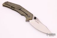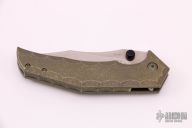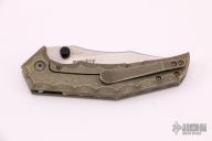 This Thresher by Massdrop is a Gavko design. It features a satin finished blade with dual thumbstuds. The handle has a tumbled and anodized titanium frame with matching backspacer and tip up clip. Comes with original zippered case, and box. Excellent condition.