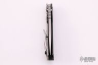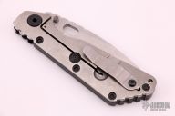 This SMF CC by Strider Knives features a stonewashed blade and smooth black G-10 and stonewashed titanium handle and matching tip up titanium clip. Notches on thumbrest, rear of handle, and early lockup. Includes Hinderer "Lock Bar Stabilizer" for maximum reverse lock retention. Excellent condition.