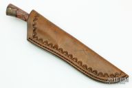This Meridian Trekker by Tristen Knight features a hand forged black out finished blade with notched thumbrest, .210" blade stock and .957" blade depth, full tapered tang construction. The handle has nicely shaped red maple burl scales with brass pins. Comes with a zippered case. Comes with a brown leather sheath, it is not original, but fits nicely. This knife did not originally come with a sheath. Comes with COA dated 12/1/2020. Excellent condition.