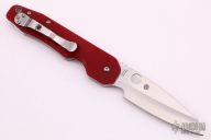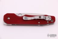 This Smock by Spyderco has a satin finish sheepsfoot style blade. The handle features red G-10 scales over stainless steel liners with a reversible stainless steel pocket tip up pocket clip. Comes with original box and paperwork. Excellent condition.