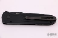 This Invictus by Pro-Tech is a Prometheus Design Werx design, it features a black blade with a notched thumbrest.  The handle has a black aluminum frame with a black stainless steel tip up clip, lanyard hole at the butt. Push button with red G-10 inlay and a safety.  Comes with original box and papers. New condition.