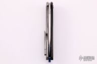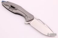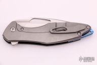 This Arius Flipper by Koenig knives features a two-tone blade with thumbhole. The handle has a nicely milled carbon fiber and titanium frame, tip up clip with hidden screws and anodized titanium backspacer. Has polished chamfers. Has ceramic bearings and a ceramic detent ball. Nice detent, lockup and blade seating. Comes with original box and COA dated 11/29/21. New from maker.