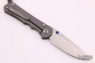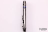 This Large Inkosi from Chris Reeve Knives features a tumble finished drop point blade with dual anodized thumb studs and notched thumbrest. The handle is comprised of a bead blasted and laser engraved titanium frame over a single barrel spacer with a matching bead blasted titanium tip up clip. Includes original box, paperwork and accessories. New from maker. Maker's card dated October 27, 2021. S45VN Blade Steel.