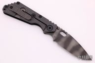 In 1988, he began making specialized knives for use by the military. This turned out to be fortunate turn of events, both for Mick and for the knife using world at large. Mick’s approach was to not get burdened by the weight of past designs. He started with a tabula rasa, a clean slate, informed only by his own experiences and knowledge of what a soldier needed in a knife. The knives he made didn’t look like the hunter-inspired knives seen in most PXs; instead they were almost brutish in their functionality: beefy, solid, and with unbreakable ¼” stock full tangs. These knives were the first indication of his innovative approach: in addition to their utilitarian design, the knives carried a subdued finish and subdued sheaths. No one carrying a Strider knife was going to be spotted because of sunlight glinting off of polished steel or a glossy leather sheath. Soldiers, policemen, and other men going into harm’s way couldn’t buy them fast enough. Mick sampled some good ideas, but made them great. For instance, he was not the first to wrap a knife handle with paracord, but he was the first to do it in a way that was tough enough for sustained infantry use. His knife line grew over the following years to include different varieties of fixed blades, all distinctive and many with specialized uses. But constant in all of them was a disregard for convention, and a desire to try new ideas. An example of this was the Ajax – it featured a very wide blade surface clearly designed to inflict damage. It drew on the weapons carried by Roman legionnaires, yet was modern and usable in the 21stCentury battlefield. Mick also worked on his technical skills, always striving to become better at the physical craft. At the 2002 Blade Show, a group of the best tactical knifemakers in the country decided to compete with each other to produce the most innovative and interesting fixed “battle blade” at the show. Mick’s entry, an incredible integral knife made out of ½” titanium stock with a zippered composite blade, gorgeous handles, and integral guard was the unanimous winner, and effectively retired the competition.