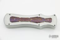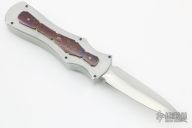 This Burn Palm Viper OTF has a hand rub satin finished hollow ground double edged blade. Chassis is cut from 416 SS and has timascus overlays. Blade deploys with authority and locks up tight with minimal blade play. Excellent Condition. Comes with zippered case and COA dated 7-27-21.