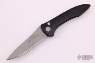 The Tactical Hybrid auto by Tinives features a bead blasted spear point style blade. The handle is composed of textured black aluminum and a tip down titanium pocket clip. Excellent Condition.