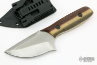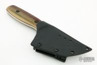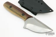 This fixed blade from Sheila Dwyer features a double edged blade with .196" blade stock and 2.202" blade depth, full tang construction. The handle is comprised of sculpted paper micarta scales. Includes kydex sheath with TekLok. Excellent condition.