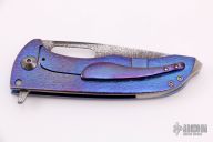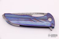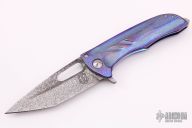 This Splitter from John Gray Knives features a "Dark Rain" finished tanto blade with large fullers, thumbhole and flipper. The handle has barked and anodized titanium frame with matching tip up clip, titanium backspacer with glass breaker at the butt. Nice detent, lockup and blade seating. Comes with a zippered case and COA. Excellent condition.