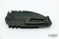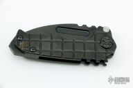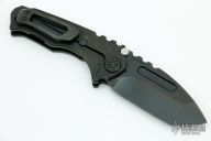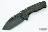 This Micro Praetorian from Medford Knife and Tool features a black PVD finished blade with fuller/thumb grooves and notched thumbrest. The handle is comprised of a black PVD titanium frame over a black PVD backspacer/glass breaker, black PVD finished tip up pocket clip. Has MEFP. Includes original box and paperwork dated November 22th, 2021. Excellent condition.