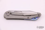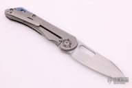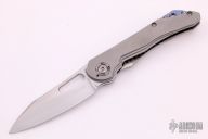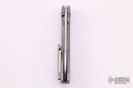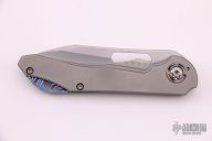 This Padawan by Pedro Buzetti features a hand rub satin finished blade with thumbhole. The handle has a bead blasted titanium frame with jeweled interiors, mokuti backspacer, anodized titanium pivot collars, satin finished tip up titanium clip. #007. Rides on bearings, nice detent, lockup and blade seating. Comes with a zippered case. New from maker.