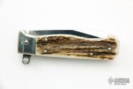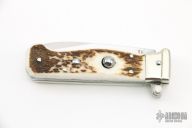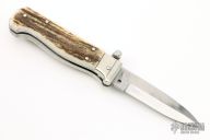 This Picklock from AGA Campolin features a polished spear point style blade. The handle has nickel silver bolsters with stag scales over brass liners and a stainless steel backspacer. Excellent Condition.