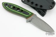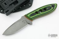 This TK-2 EDC by Tom Krein features an acid washed blade with .148" blade stock and .957" blade depth, full tang construction. The handle has green/black "Toxic" G-10 scales with black linen micarta pins, aluminum lanyard tube and orange liners. Includes Kydex sheath with TekLok. New from maker!