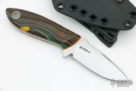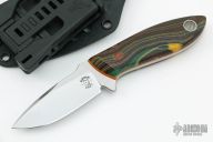 This TK-2 EDC by Tom Krein features a satin finished blade with .126" blade stock and .947" blade depth, full tang construction. The handle has G-Carta scales with natural canvas micarta pins, aluminum lanyard tube and orange liners. Includes Kydex sheath with TekLok. New from maker!