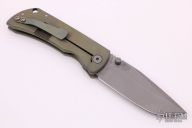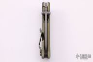 This MAC2 features a bead blasted drop point blade with dual thumbstuds and a notched thumbrest. The handle features an anodized titanium frame with a matching tip up pocket clip. Includes box and papers. New from Maker!