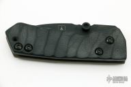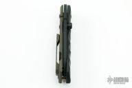 This Metro framelock folder by Crusader Forge features a black blade with a single thumbstud and notched thumbrest. The handle is comprised of an anodized titanium frame and contoured black G-10 scale with a lanyard hole at the butt. Matching titanium clip positioned for tip up carry. Nice detent and lockup. Has some scuffs, otherwise good condition.