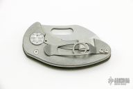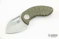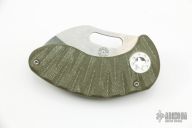 This Nano framelock folder by Curtiss Knives features a stonewashed blade with green G-10 scale, titanium liner, tumble finish titanium frame and clip, tip up carry. Excellent condition.