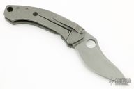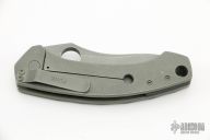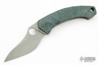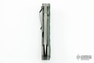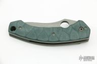 This Funk framelock folder by Jens Anso features a stonewashed blade, stonewashed titanium frame and clip, and a textured green G10 scale on one side. Nice blade seating, lockup, and detent. Has some light scuffs, otherwise excellent condition.