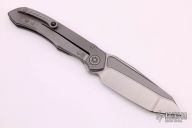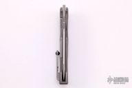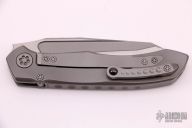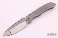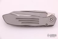 This Anax from TAD Gear/Marfione Custom Knives features a tri-tone stonewashed tanto blade with notched thumbrest. The handle is comprised of an integrally constructed bead blasted titanium frame with matching tip up clip with ceramic ball inset. Does not include "Stinger Style" screw in lanyard. Has a few scuffs, otherwise excellent condition. Dated 09/2015