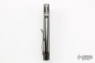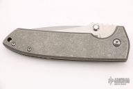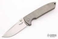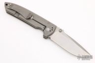 This Project VECP by Les George features a tumble finish CNC flat ground blade and a bead blasted titanium frame with matching tip up clip. Hinderer lock bar stabilizer. Phosphorus bronze washers. Smooth action. Nice blade seating, detent and lockup. Excellent condition.