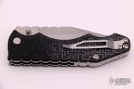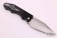 "Jason Brous began his efforts in knifemaking with the benefit of nearly 10 years of experience in CNC machining. His father owns a shop that specializes in the custom machining of high-precision components, mainly for the medical industry. Jason spent a lot of time in his father’s shop while growing up, and by his mid teens was actively helping out with production. His skills and knowledge steadily increased and by the time he was 20 he was a seasoned and very competent machinist. Jason's interest in knives actually began with art - specifically a style called “Bio-mechanical” - as practiced by one of his favorite artists, a Brazilian painter and tattooist named Lango. Biomechanical art (also called Biomech) is a surrealistic style of art that combines elements of machines and robotics with organic animal features. Intrigued by this style of art and its similarity to many fantasy knives, Jason figured that knifemaking would be a natural extension of his metalworking skills and an appropriate medium for his artistic ideas. Although he had no specific training in knifemaking, in 2010 he designed and made his first knife - a fantasy design with a Biomech flavor. Through persistent trial and error, Jason changed his style of knife design to focus on functional simplicity, while still maintaining a strong artistic signature. His early successes came in the form of a series of stout neck knives with dual finger-hole grips. Fans of these “Silent Soldier” neck knives began asking for other expressions of the design. Since then, Jason has created numerous variations including a clip point version, a tanto version and the very popular folder version called the Silent Soldier Flipper."
