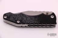 This Brous Blades Triple Threat folder features a stonewash blade with a blade width of 1/8" and a blade depth of 1 3/8".  It has milled black G-10 scales, stainless steel liners, backspacer and tip up carry clip. #144/500.  Has a couple light scratches, otherwise excellent condition.