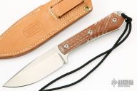 "In the Chris Reeve Knives tradition of simple, elegant and functional, the Nyala is a modern version of a classic skinner. Featuring the utility of a drop point and enough belly for skinning, this all-purpose knife will prove useful in a multitude of applications. The integral handle and blade of CPM S35VN is sturdy and practical - spiral and lineal grooves in the micarta handle provide positive grip - good knife control is provided by serrations on the spine. The high quality sheath is made of leather treated to be water-resistant." Includes original brown leather sheath. Excellent  Condition.