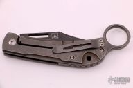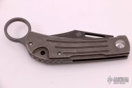 Blasted bronze titanium frame features dark fullers and stonewash titanium pocket clip.
