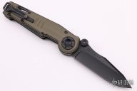 This TAD Gear Edition MUDD folder from Grant and Gavin Hawk features a tumbled drop point blade with dual thumbstud. The handle has green G-10 scales, black titanium frame, tip up reversible titanium clip. Nice lockup and blade seating. Has some scuffs, otherwise excellent condition.