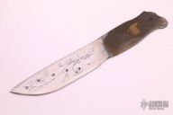 Along the way I realized I now had the tools to build my own knife blades. I work with steel, but work it hard and slow so do not do tempering. I still often buy good blades from a blade maker, and think I prefer the stories told in the handle materials best. I do my own acid etched scenes in the steel. I?m now maybe one of the experts on raw material, doing identifications for museums, restorations , appraisals, as well as doing my own art and supplying others. I have 9 buildings full of raw materials now. ?Truckloads? I have customers from all over the world come find me in Nenana Alaska on a pilgrimage to look over my materials, who are not disappointed. So I have lots to choose from when building a knife. I stopped counting my custom one of a kind art pieces at 10,00 items over 10 years ago. I?m a full time artist.