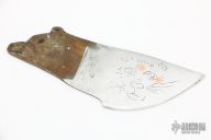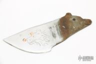 This utility knife blank from Miles Martin features a drop point blade with etched theme on flats and copper inlays. Fashioned from D2 steel. New from maker.