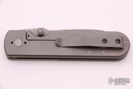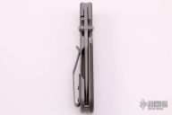 This FRH by Brian Fellhoelter features a bead blasted blade with notched thumbrest, fullers and dual tritium thumbstuds. The handle has a dovetailed and bead blasted titanium bolster and a green G-10 scale on one side, bead blasted titanium frame and clip. Nice blade seating, detent, and lockup. Has some scuffs and some wear on the blade edge near the tip, otherwise good condition.