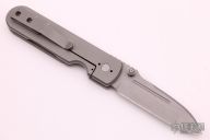 "I am a folder maker. While there will always be the occasional fixed blade, folders are my passion. The steels I enjoy working with include CPM154, ATS-34, 440C, S30V, and Stainless Damascus from Devin Thomas. All of the metal parts on my knives that can be Titanium are Titanium including frames, liners, thumbstuds, bolsters, clips and spacers. Pretty much everything except for the blade. I often anodize a substantial portion of my titanium, and can get a deep green that few makers succeed at. As far as handle materials go, I mostly use Carbon fiber, G10, or Micarta. I use large bronze pivot bushings in all of my folders, and either Nylatron or Bronze washers. All of my parts are made in-house except the screws. I have an old Bridgeport Mill, an older Logan Lathe (1943), a Hardcore grinder, and various other tools, lots of them made by myself. I also do all of my own Heat treating in an EvenHeat Oven." My knives have won several major awards, including Best Tactical Folder at the Blade Show 2011.