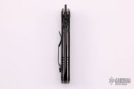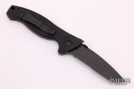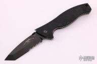 This SOCFK-A-BTS from Emerson features a black blade with partial serrations, notched thumbrest, thumbdisc and wave feature. The handle has black G-10 scales, titanium liners, black backspacer, and a tip up black stainless steel clip. S/N 026 and dated 2000. Comes with original box and papers. Has some light scuffs, otherwise excellent condition.