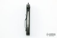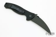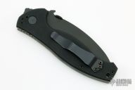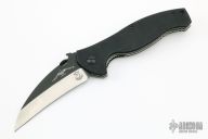 This SARK from Emerson features a black chisel ground blade with notched thumbrest, thumbhole and wave feature. The handle has black G-10 scales, titanium liners, black G-10 backspacer, and a tip up black stainless steel clip. Nice detent, lockup and blade seating. Comes with original box. Has some scuffs and scratches, otherwise excellent condition.