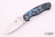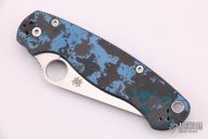 This Paramilitary 2 Linerlock Folder from Spyderco has a satin finished clip point blade with thumb hole and notched thumb rest. Handle has black/blue Fat Carbon scales with stainless steel liners and stainless steel 4-way reversible clip. Comes with original box and papers. Excellent condition.