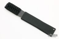 In 1988, he began making specialized knives for use by the military. This turned out to be fortunate turn of events, both for Mick and for the knife using world at large. Mick’s approach was to not get burdened by the weight of past designs. He started with a tabula rasa, a clean slate, informed only by his own experiences and knowledge of what a soldier needed in a knife. The knives he made didn’t look like the hunter-inspired knives seen in most PXs; instead they were almost brutish in their functionality: beefy, solid, and with unbreakable ¼” stock full tangs. These knives were the first indication of his innovative approach: in addition to their utilitarian design, the knives carried a subdued finish and subdued sheaths. No one carrying a Strider knife was going to be spotted because of sunlight glinting off of polished steel or a glossy leather sheath. Soldiers, policemen, and other men going into harm’s way couldn’t buy them fast enough. Mick sampled some good ideas, but made them great. For instance, he was not the first to wrap a knife handle with paracord, but he was the first to do it in a way that was tough enough for sustained infantry use. His knife line grew over the following years to include different varieties of fixed blades, all distinctive and many with specialized uses. But constant in all of them was a disregard for convention, and a desire to try new ideas. An example of this was the Ajax – it featured a very wide blade surface clearly designed to inflict damage. It drew on the weapons carried by Roman legionnaires, yet was modern and usable in the 21stCentury battlefield. Mick also worked on his technical skills, always striving to become better at the physical craft. At the 2002 Blade Show, a group of the best tactical knifemakers in the country decided to compete with each other to produce the most innovative and interesting fixed “battle blade” at the show. Mick’s entry, an incredible integral knife made out of ½” titanium stock with a zippered composite blade, gorgeous handles, and integral guard was the unanimous winner, and effectively retired the competition.