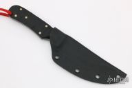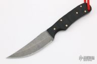 This fixed blade from Ken Brock features a stonewashed blade with a carbidized edge, fileworked thumbrest, .105" blade stock and 1.018" blade with full tang construction. The handle has black G-10 scales with brass pins. Comes with a kydex sheath. Excellent condition.