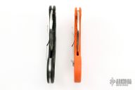 This Rescue Karambit by Bladetech is a Tarani design, it features a satin finished hawkbill blade with partial serrations and unsharpened tip, notched thumbrest and thumbhole opening. The handle is orange FRN with a stainless steel backspacer and tip up reversible stainless steel clip. Excellent condition. Comes with original box and papers.