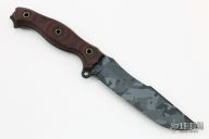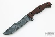 This P&L Statement by Busse features an urban multicam coated clip point blade with .220" blade stock and 1.375" blade depth, full tang construction. The handle has black/red G-10 scales with a lanyard hole at the butt. New from maker. Arizona Custom Knives Exclusive.