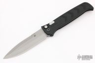 This Militia Auto by Rob Dalton features a bead blast finished blade and a black anodized aluminum frame with safety. Titanium clip, tip up carry. Powerful coil spring action. Has a few light scuffs, otherwise excellent condition. #20130