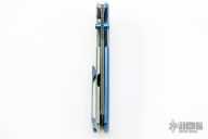 Made to mitigate corrosion with a titanium handle and a stonewash finish Vanax SuperClean blade, The Drift holds a minimalistic modern design that is thin, lightweight, and corrosion resistant - making it ideal for an everyday carry and wet environments. Excellent condition. Comes with original box and papers. This one has a custom ZircuTi clip. Comes with original clip.
