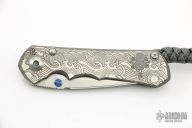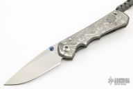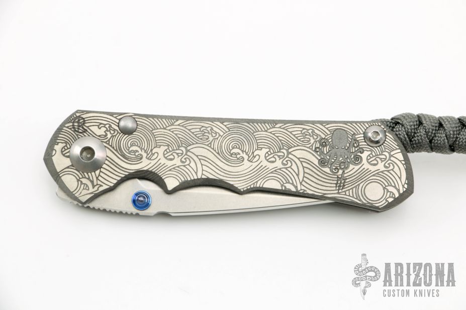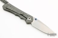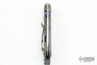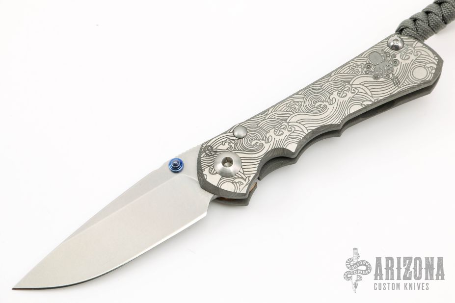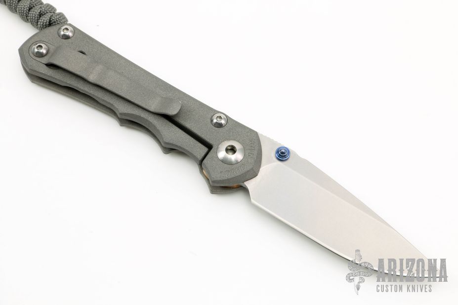 This Small Inkosi from Chris Reeve Knives features a tumble finished drop point blade with dual anodized thumb studs and notched thumbrest. The handle is comprised of a bead blasted and laser engraved titanium frame over a single barrel spacer with a matching bead blasted titanium tip up clip. Includes original box, paperwork and accessories. New from maker. Maker's card dated Nov 8, 2021. S45VN Blade Steel.